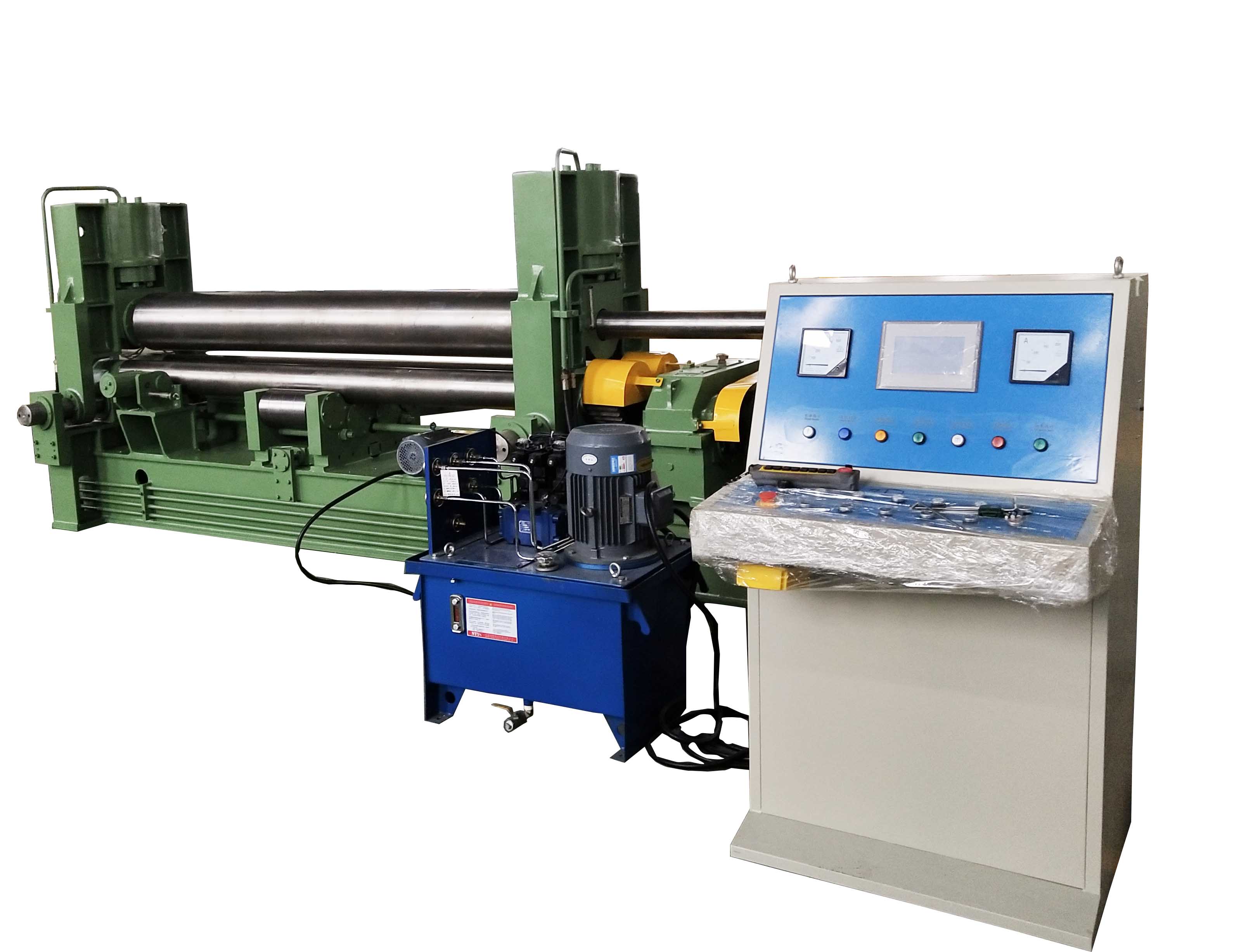 W11SNC萬能式三輥卷板機是一種雙夾板彎板機。 上輥為液壓驅動。 上輥可水平和垂直調節,兩個下輥是固定的。 所有合金鋼輥均經過感應淬火和熱處理。 經過感應淬火處理后,所有的輥都將被研磨和拋光。