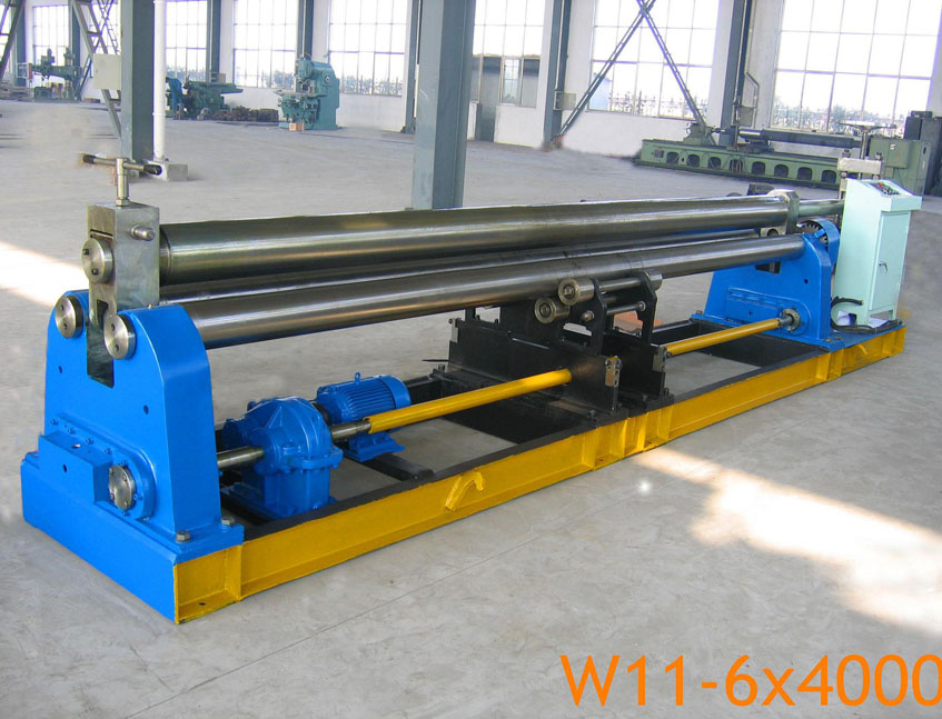 T3-6T4000W Plate Bending Machine is a full mechanical three plate bending machine. All of the three rollers fixed, placed like a pyramid.